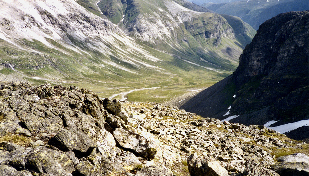 Fortsatte vest for det bratte partiet Vågehalsen som fører ned til Jonadalsbotnen.