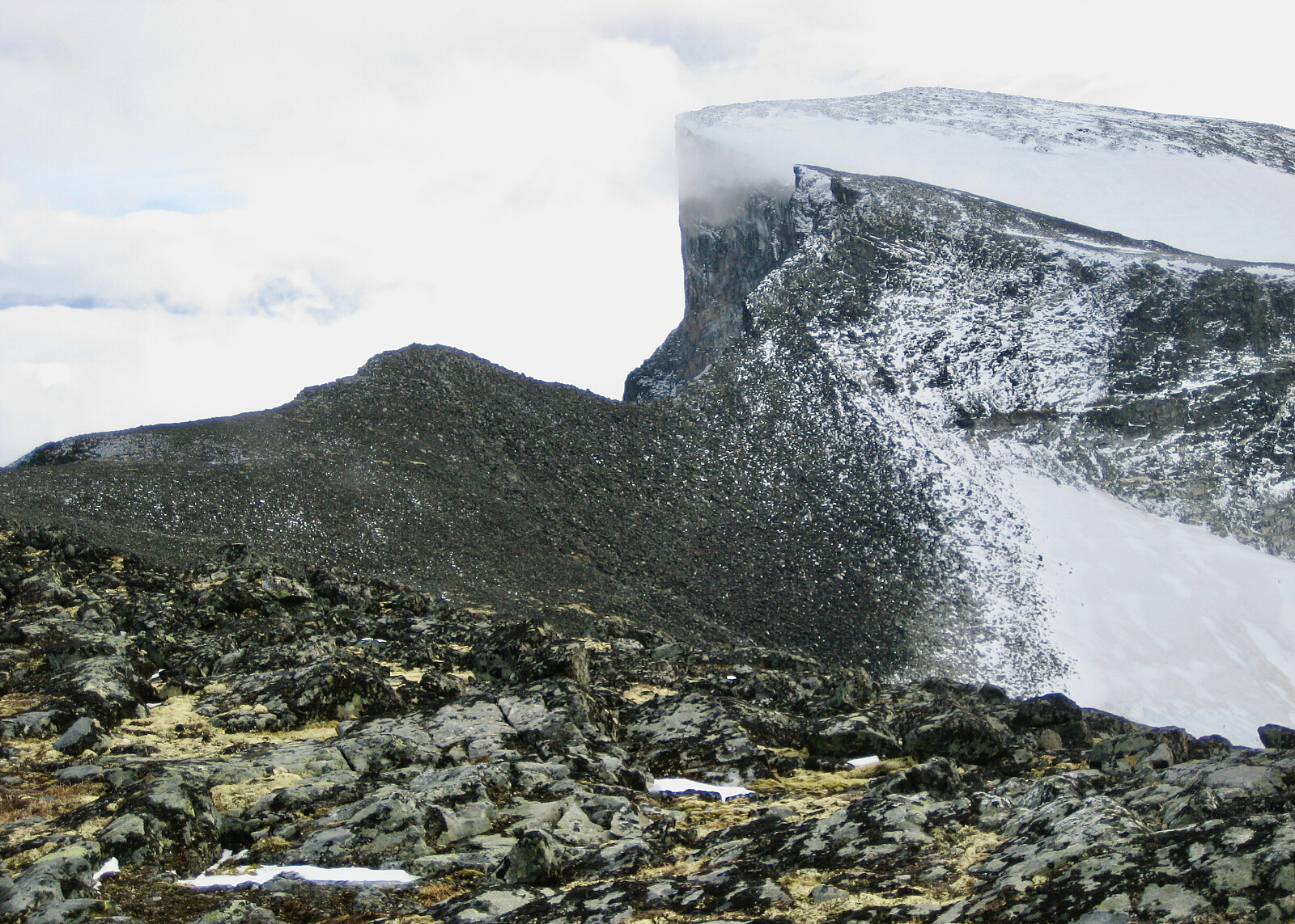 Nørdre Bukkehøe med stupet opp mot Bukkehøe 2314 i bakgrunnen