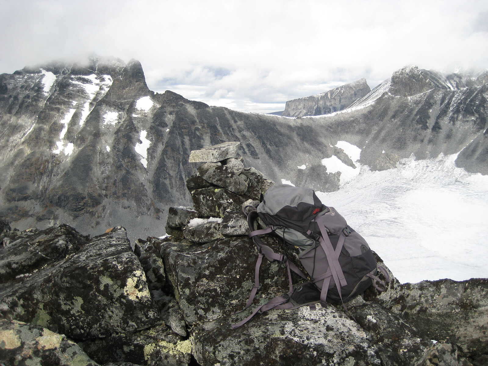 Varden på Nørdre Bukkehøe. Skardstind, Veslepiggen og Ymelstinden i bakgrunnen