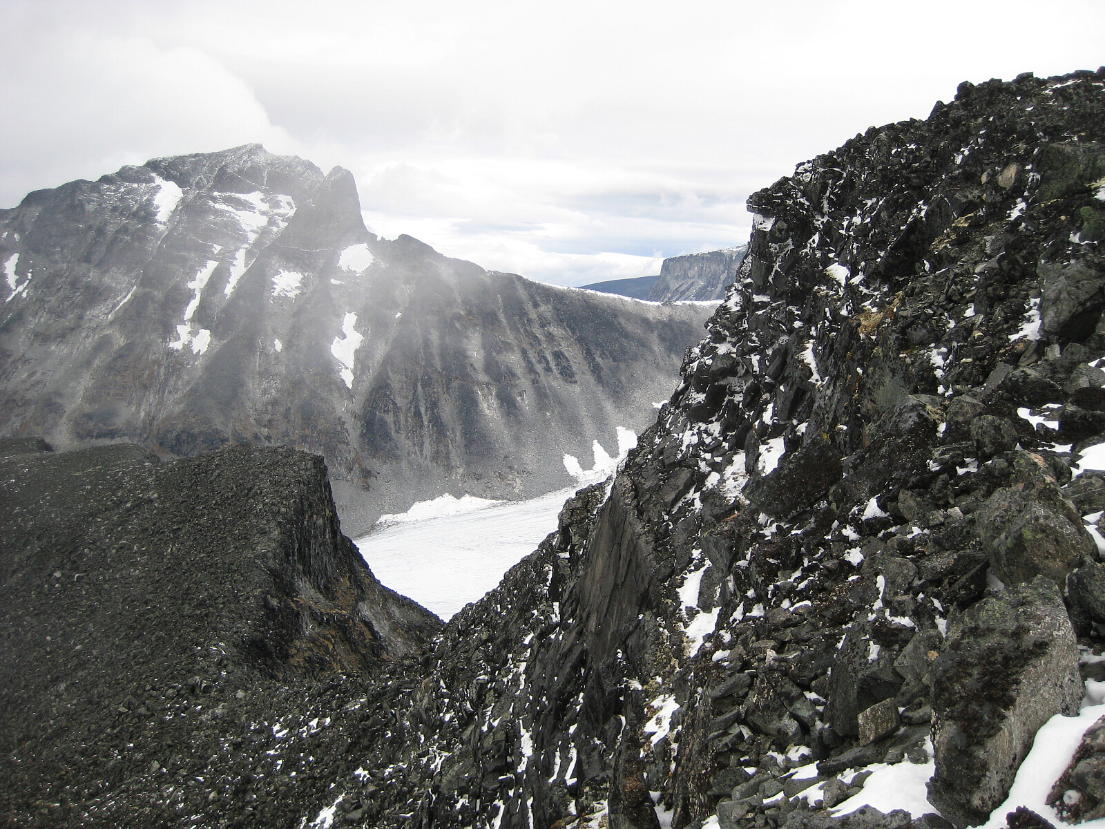 Fra Svartinden fortsatte jeg østover langs kanten på stupet ned mot Nørdre Illåbrean.