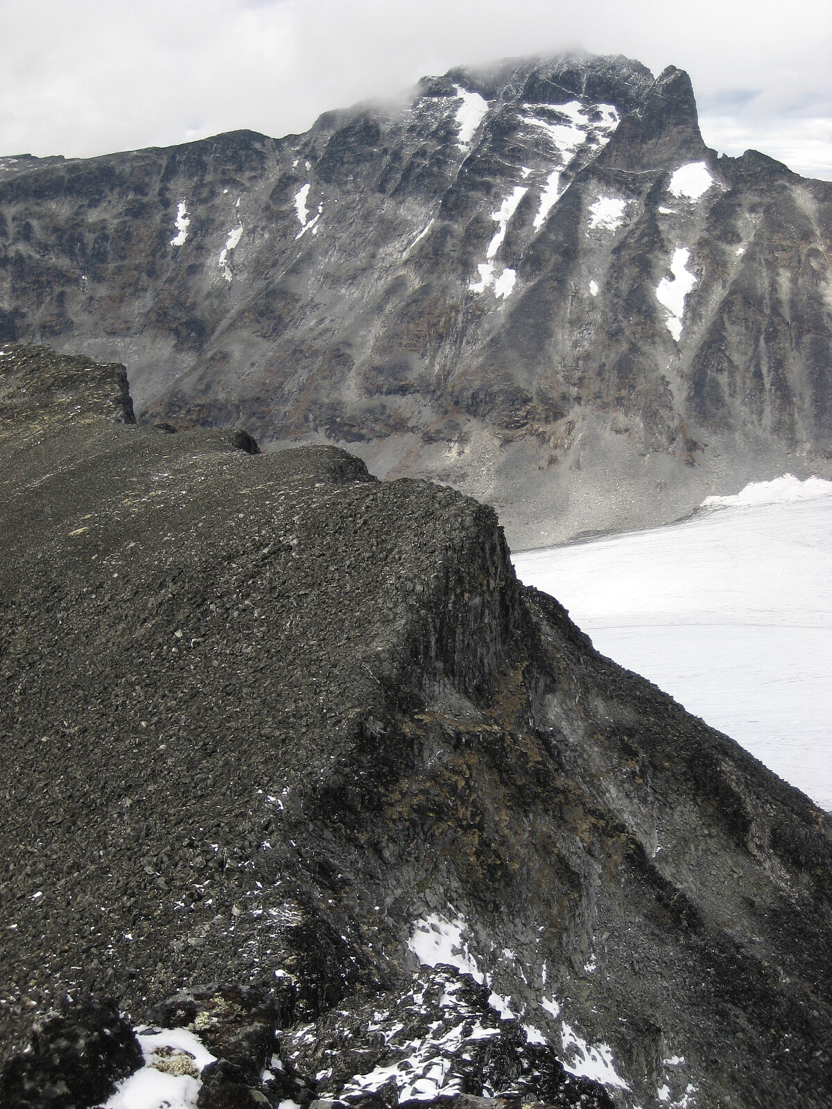 Utstikkeren nord for Bukkehøe 2314. Er det denne utstikkeren som har gitt navnet til Tunga på kartet? Skagsnebb og Hurrbrean i bakgrunnen