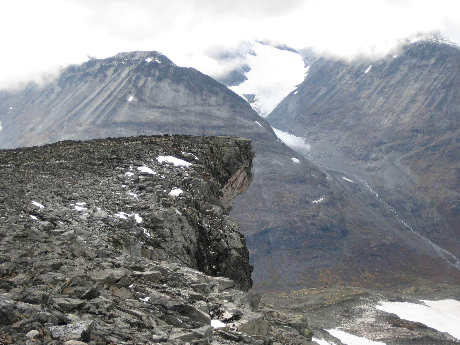 Fantastiske farger på fjellet på stupet ned mot Nørdre Illåbrean