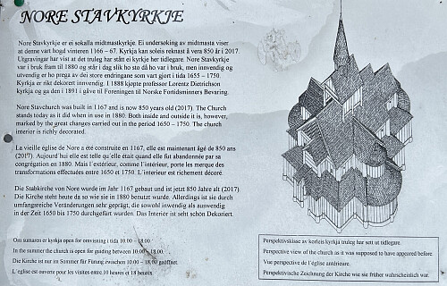 Etter besøket til Rollag stavkirke gikk turen videre til Nore der vi besøkte Nore stavkyrkje der de eldste delene av kirken (midtmasten) er datert til å være fra 1167!