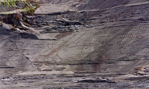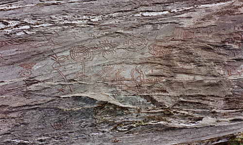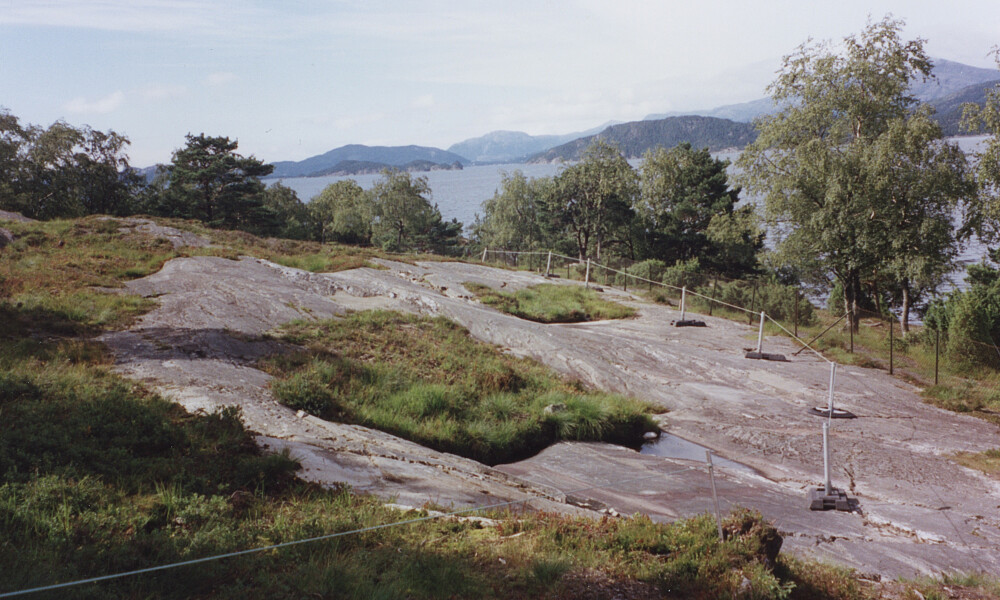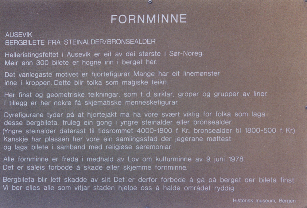 Etter turen til Selje Kloster besøkte vi helleristingsfeltet i Ausevika - se Ausevika bergkunst på kulturminnesok.no.
