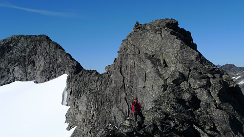 Fra S1 ble eggen videre sørover overraskende smal og eksponert på begge sider! Men fjellet var tørt og fint, så det ble en artig tur utover mot S3.