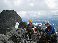 Vi hadde bestilt fører fra Norgesguidene for å gå på Styggedalstinden og Sentraltind, men værforholdene tillot ikke en slik tur. Alternativet ble Soleibotntindtraversen med Sverre Hjelmeland som guide. Start fra Turtagrø Hotell kl 0930. Vi kjørte Tindevegen og parkerte i Soleibotnen parkeringslomme . Oppe på Lauvnostinden kl 1115. Ryggen utover mot Nørdre Soleibotntinden smalner raskt av, og her var det på med klatreutstyr. Oppe på toppen av Nørdre kl 13. Bra sommervær og flott utsikt! Etter en spisepause fortsatte vi ned i skaret mellom Nørdre og Store der vi var oppe kl 1425. Vi fortsatte så sørover mot de Søre Soleibotntindene. Først ned fra Store til Sørøst for Store Soleibotntinden . GPS ved varden 4.35378 68.13095 som stemmer bra med koordinatene på PB. GPS-sporet fra turen til 500fjell (Sondre Kvambekk) går et lite stykke fra denne toppen. Siste topp for dagen var Soleibotntinden S3 - en liten hump i terrenget med PF på bare >>>