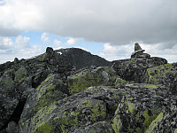 Skardstind 4. juli 2009 (Skrevet av Knut-SA 01.05.2010) Tur foretatt: Juli 2009. Andre på toppen: Astrid-SA 4. juli 2009 Knut. Vi overnattet i Leirdalen i telt nær utløpet av Ytre Illåe og Geitsetra. Tung stigning opp Raudhamrane til Dumhøeplatået. Vi var først innom Dumhøe 2181 og sekundærtoppen Dumhøe Sør før vi begge gikk opp på Vestre Skardstind. Her snudde Astrid mens Knut gikk videre. Først til høyre for første hammer og deretter videre opp langs eggen med noe utsatt klyve-klatring. Markerte ruten et sted for tilbaketuren og var glad for dette da denne nedgangen ellers var vanskelig å finne. Flott utsikt fra toppen. Gikk videre til Nåle (2310). Retur samme vei. Traff igjen Astrid ved varden på topp 1945. Dryg og bratt tur tilbake til teltet hvor det ble en øl på deling, >>>