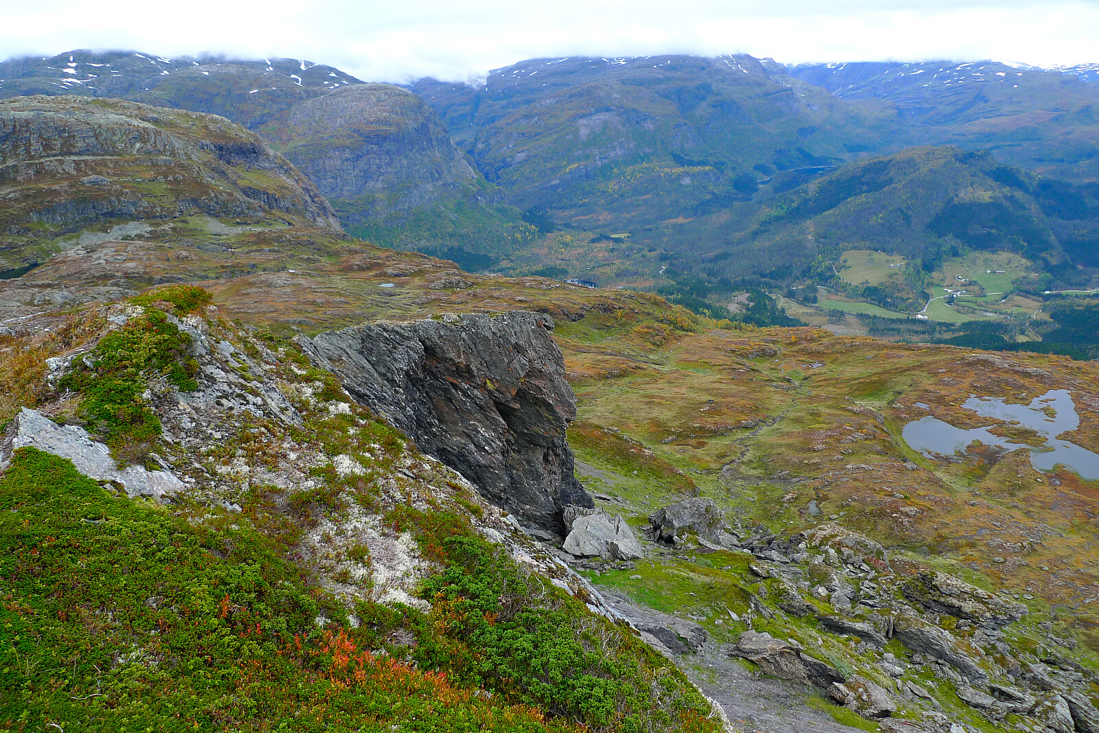 Værmeldingene for helgen var flotte, og alt lå til rette for noen flotte dager i nabofylket Sogn & Fjordane. Etter overnatting i campinghytte i Sandane, kjørte jeg til Hyen der jeg tok av mot venstre forbi Ommedal og videre oppover til Gjengedalen. Kom til Gjengedalsstøylen bomveg (50 kr) og fortsatte til Dalen. Her fant jeg ingen P-plass, så jeg valgte å overse skiltet med privat vei etc. Kjørte over en bro, passerte en grind og fant utmerket tilrettelagt parkering på Dalen P-plass . En bonde kom kjørende på traktor, og sa at det var helt OK å parkere her. Han kikket og på turkartet og antydet en noe mer direkte rute mot toppen enn det som er beskrevet på PB.