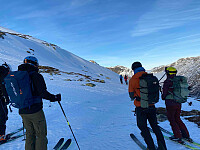 Bra kaldt på parkeringa og innsteget. Fossen var fullt forma og utan snø. Eg starta og tok det litt rolig (fossen er stor og kan gåast med litt ulik vanskegrad). Tok den i tre lengder i dag så det vart litt kortare å vente på standplass i kulden. Drog første lengdee. litt mot venstre og sette stand etter 30 m, ca WI3 og smøris. Jesper kom etter og gikk det litt slakare mellompartiet, med litt oppsøkande klatring. Så var spørsmålet om eg skulle prøve meg på den bratte venstrevarianten eller den slakkare høgrevarianten. For bratt for tynt for svak - det var høgrevarianten. Og den var ikkje så slakk som den brukar >>>