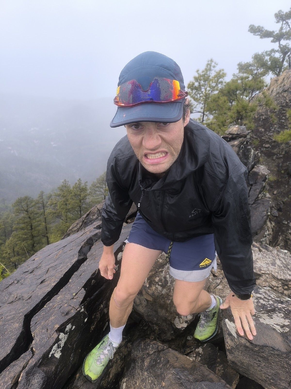Løp fra Los Palmitos etter et shitshow av en taxitur. Ikke kjør til Palmitos park og tro at du kan følge veien til Los Palmitos derifra. da kan du bli drept av hund, vakt eller delfin. Hike ned igjen, taxi opp til Los Palmitos. Igang i ti tiden. Flott flott runde på nydelige stier. 28km og 1400hm. Hike med noen tynne små spaniere som hadde vært ute på lang joggetur før. cCc armbånd og sånn.