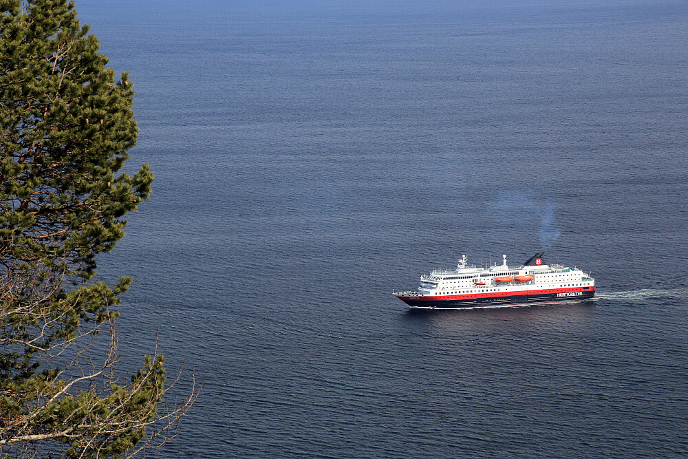 Det ble en flott tur opp fra Trolla i et nydelig vårvær. En fantastisk utsikt over Trondheimsfjorden møtte oss på St.Olavspranget der vi fikk se nordgående hurtigrute seile ut fjorden.