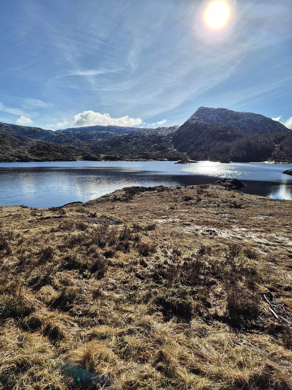 En liten fjelltur på slutten av arbeidsdagen vår i Sunnhordland. Kinno var hovedmålet, som er den høyeste fjelltoppen i Fitjar kommune. Fitjarhesten (678) er rettnok det høyeste punktet, men dette er en sidetopp av Mehammarsåto (749), hvorav toppen ligger i Stord kommune. 4 plussgrader, vindstille og flotte forhold for en fjelltur. Dessuten overraskende lite snø