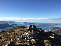 Jeg la av gårde oppover Fjellveien som etterhvert går over til en god og tydelig merket sti helt til topps. Ferjemannen hadde tipset meg om at det var en steinbu like under toppen, utrolig hvor mange hytter og buer som finnes på toppene rundt om her... Her er såpass at man kan overnatte og fyre i ovnen! Jeg tok meg desverre ikke tida til å kikke på den da jeg heller prioriterte >>>