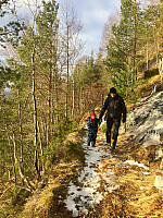 Deilig dag. Gikk alene opp i selet og fyrte opp før jeg videre tok meg en tur opp på Nibba. Da jeg kom ned, møtte jeg Vinjar og Ove som kom gående opp. Litt lek utenfor i sola før vi gikk inn og varmet oss og spiste lunsj og spilte spel :-) artig rumpeaking ned bøen til naboen på returen ;-)