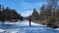 Ved Brekka fikk Vinjar og jeg en flott stund i varmende sol, og deilig lunsjpause mens Ove tråkket videre for et fuglekasseprosjekt. Flott retur sammen med Vinjar tilbake til parkeringen. Mye folk i løypene idag, og samtidig et flott skiskytterrenn ved Harpefossen. Utmerket dag!!!