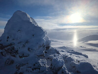 En fantastisk tur i kveldssol i Skaget skulpturpark desember 2025. Fjellet godt plastret i snø og veldig lite stein å se. Skaget skulpturpark: