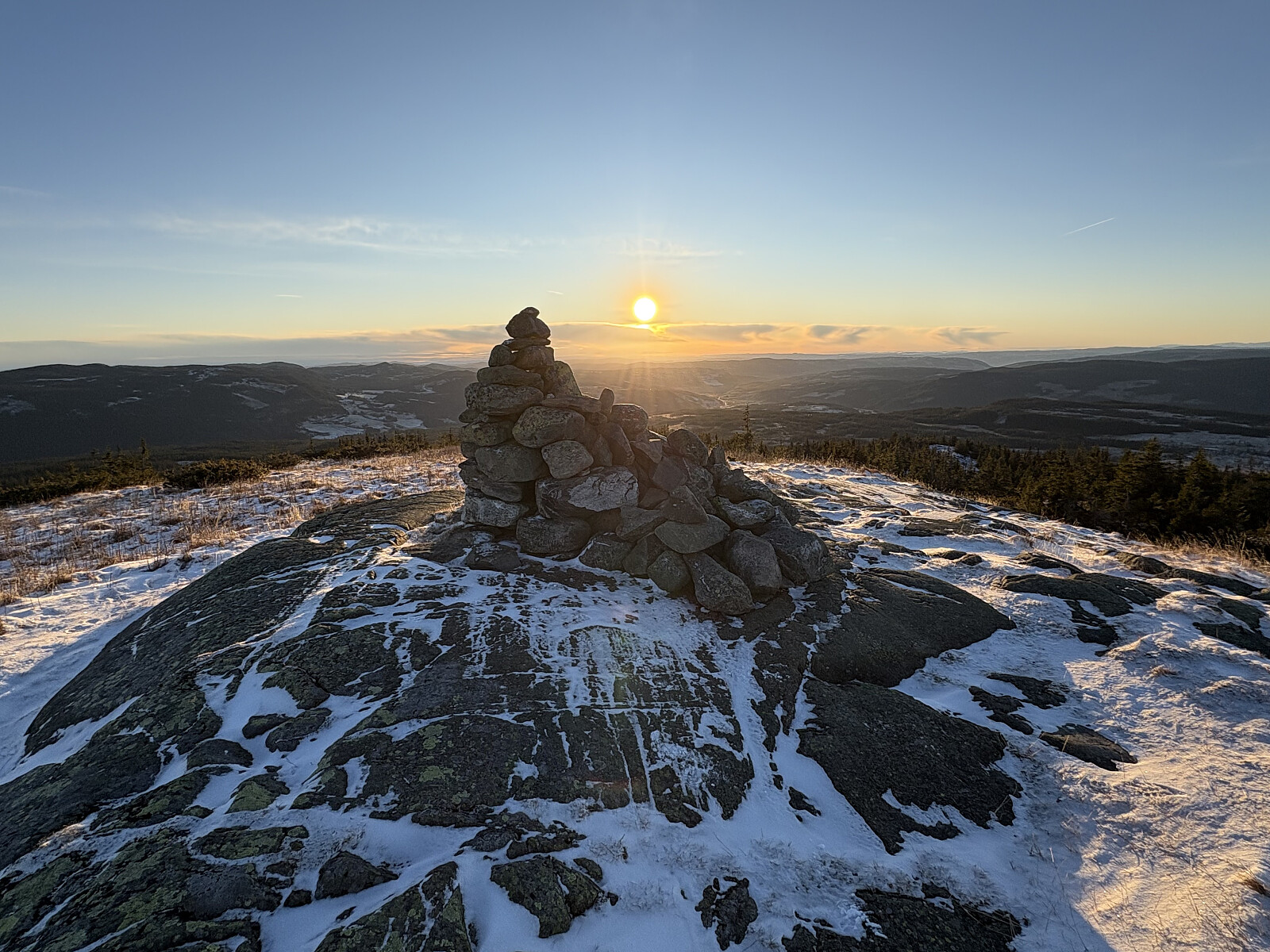 På tilbaketuren valgte jeg å følge stien ned igjen mot Øyangssætra, men først tok jeg en liten avstikker opp på SØ-toppen og fikk med solnedgangen derfra.