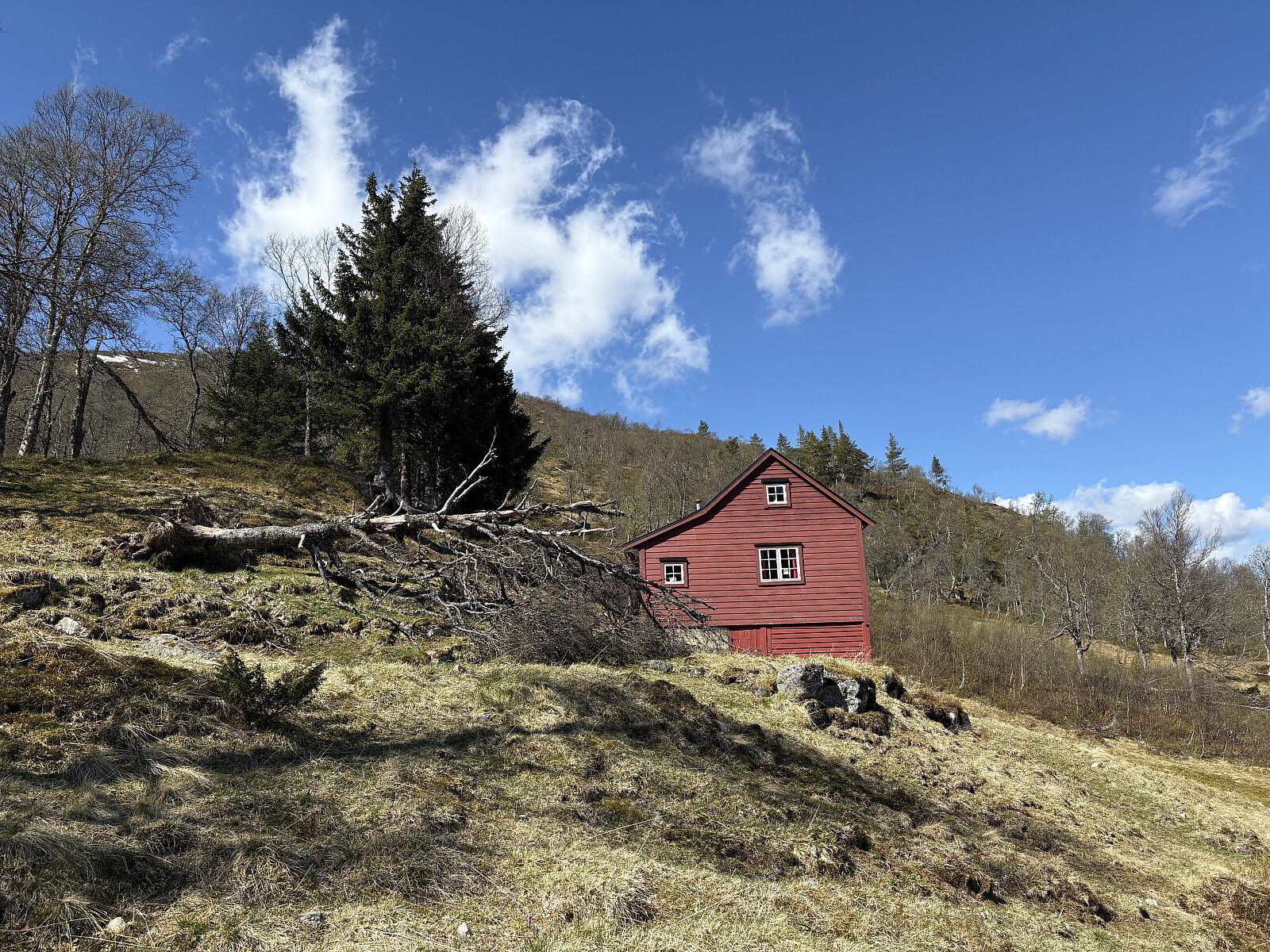 Etter turen til Slåttenovi kjørte jeg ned igjen til Bolstad og videre opp den smale, svingete veien til Rasdal. Jeg parkerte i en lomme like øst for Rasdalsvatnet og fulgte veien oppover til Tuftene. Stien gikk gjennom tunet på gården og videre oppover langs bekken til øverste delen av skaret. Herfra dreide den opp på ryggen og deretter flatt bortover mot de to paddehattene som representerer toppen av Jonshorgi. Stien var ikke så lett å følge over myrene, men her var det relativt greit å gå uansett. Tydelig sti opp brattsidene på toppkronen på Jonshorgi. Artig topp med et lite tjern like ved toppunktet. Fin utsikt!