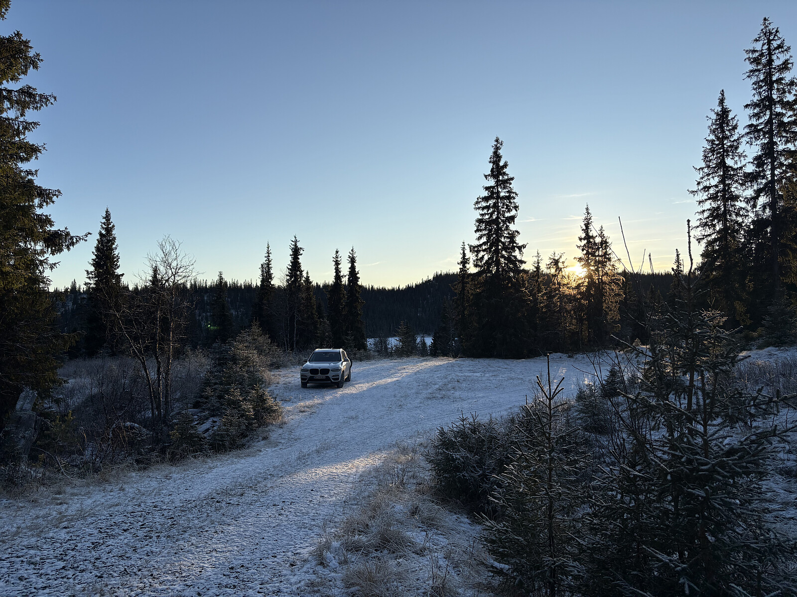 Jeg kjørte til Fossum og parkerte i en lomme rett på utsiden av bommen. Herfra fulgte jeg skogsveien til veis ende og videre i lyngterreng opp til Svarttjennhøgda. En ganske åpen kolle uten utsikt. Et par bolter viste spor etter et tidligere trigpunktmerke, ellers ingen markering.
