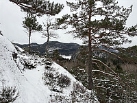 Jeg parkerte i en lomme ved hovedveien og gikk innover stikkveien forbi et bolighus. Tok til høyre i første kryss og kom snart inn på en sti som steg oppover i riktig retning. Etter hvert forsvant stien og det ble litt småklyving opp til trigpunkt-toppen vest for Eikenes. Fin utsikt i flere retninger herfra. Ikke lenge etter ankom jeg hovedtoppen og kunne nyte både utsikten og at det var lite flått-fare på denne årstiden:)