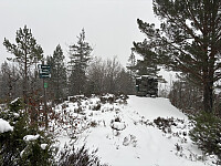 Jeg parkerte i veikanten i den skarpe svingen øst for Foreknuten. Herfra fulgte jeg veien innover et lite stykke før jeg gikk bratt opp til toppen på blåmerket sti. Det var litt isete og noe guffent et par steder, men greit å gå så lenge det gikk oppover. Jeg visste at det gikk en annen rute ned i tillegg, og satset på at den var mindre bratt. Trigpunktmerke og krakk på toppen uten den store utsikten. Selvsagt litt utsikt her og der på vei opp og ned.