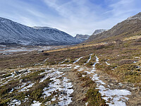 Langtur med stisykkel og til fots. Start i toppen av Rådsbakken ved bommen opp mot Meadalen. Syklet opp Meadalen, forbi Soleggen, over Illmyrbandet og ned i Smådalen. Fin grusvei opp til der veien krysset Sålellselvi. Like etter dette passerte jeg en bom og herfra ble veien grovere, men fortsatt syklebar. Forserte noen bekker som hadde bygget på seg en del kjøving som var litt utfordrende å krysse herfra og fram til Smådalssætren. Fra sætra var det sti videre 8 km til Smørlie. Tipper det ble 50 % sykling og 50 % trilling. Veldig fin dal! Fra Smørlie var det god vei videre langs Tesse og over til Kleppdalen og ned i Garmo før jeg fulgte hovedveien opp til bilen. En herlig treningsøkt!