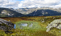 I uke 36 stod «høyfjellstur» på planen for B2 Friluftsliv ved Høgskulen i Sogndal. Navnet kan kanskje skape et noe feilaktig bilde av hva som egentlig var realiteten, men i alle fall var målet med turen å anskaffe generell friluftserfaring og pakke sekken for en hel uke på tur. De tre første dagene holdt klassen samlet med lærerne, og her gikk vi igjennom diverse temaer knyttet til planter og geologi, de siste dagene gikk vi på egenhånd i grupper på tre der hver og en gruppe hadde satt seg mål for turen knyttet til friluftskjennskap. Dette ble en veldig trivelig tur med mye bra vær!