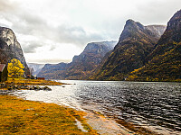 Nærøyfjorden er kjent for de fleste som en av Norges vakreste fjorder. I tillegg står den på UNESCO sin liste over verdens kultur- og naturarvsteder. Da studentorganisasjonen i Sogndal, Sjøspretten, sa at de skulle ha en padletur inn hit kunne jeg ikke la være å bli med. Dette er en tur jeg har hatt lyst til å gjøre lenge, men som krever litt logistikk. Fredag kveld var vi en gjeng på 11 som kjørte med et lass med kajakker til Winjum hytter i Aurlandsvangen. Vi hadde to årer for lite, men fikk låne det av en hyggelig kajakkutleier i Aurland. Værmeldingen for helga lovet ikke spesielt bra. Et lavtrykk fra sørvest kom til å skape mye vind, og den ville bli økende utover helga. Planen om å padle fra Aurlandsvangen til Dyrdal lørdag og videre til Gudvangen på søndag måtte revurderes. >>>