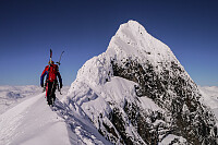 Jeg har lenge hatt et ønske om å besøke de mer utilgjengelige områdene av Jotunheimen på vinteren. Her finnes det tonnevis av turmuligheter som både kan by på spennende alpine bestigninger og urørt puddersnø. I slutten av mars kom endelig høytrykksbølgen vi hadde ventet på med mengder av godvær. Sammen med Rasmus og Kristoffer bestemte vi oss for å sette camp ved Koldedalsvatnet i Sørvest-Jotunheimen, der vi forhåpentligvis kunne få sjelefred og uforglemmelige opplevelser. Dag 1 – Innmarsj Tyin til Koldedalen Søndag formiddag var det klart for innmarsj. På vei til startstedet ved Tyin kom Kristoffer på – vi må jo ha solkrem! Dermed ble det bråvending mot huset hans for å slippe å ende opp som soltørkede tomater. Et godt tegn på at våren nærmer seg! Parkerte ved >>>