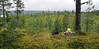 En liten tur til en kjent og kjær topp. Tok med blåbærplukkern og plukket et par liter blåbær slik at jeg har til blåbærsoll. Det er gøtt det!!! Tur alene med Embla.