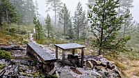 Tur fra Torsætra. Utbyttet i dag var bratte bakker og balansetrening i de våte stiene. Regn/yr og tåke idag.
