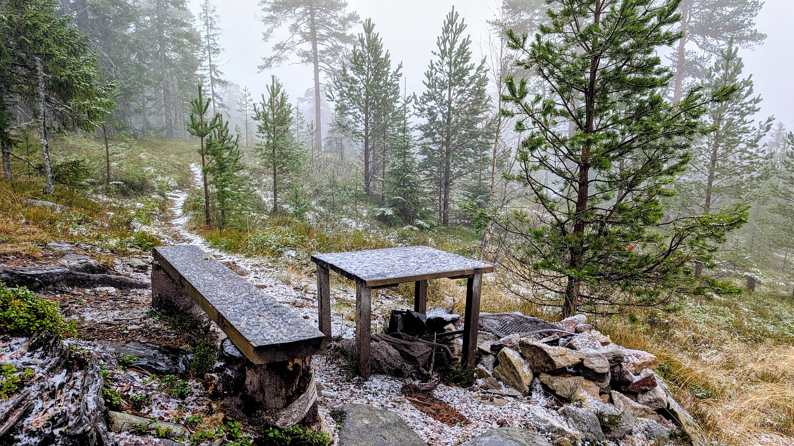 Det ble tur på Åsen idag. Trosset vær og vind. Mye regn ble det og svært vått i stier. Tåke var det også. Dårlig sikt, men en grei tur å få testet klær og støvler. Tur med Roger og Embla. Kluss med mobilen i regnet. Appen avsluttet turen av seg selv...så måtte starte turen på nytt oppe nær Høgbrenna.
