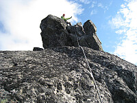 Det har vært mye dårlig vær for å bestige 2000m topper denne sommeren. Nå var endelig meldingene såpass gode av vi ville gjøre et forsøk. Denne gangen var det Semeltinder som var målet. Det primære valget var egentlig Sørøst for Sørtoppen,- også kalt "Semelkødden". Denne sære lille toppen ligger utsatt til på sørsiden. Toppen kan "greit" bestiges uten bruk av sikringsmidler, men ikke av meg....Jeg vil sikres der ja..