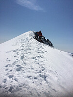 Snart dukket Inger Lise og Otto opp. Vi syklet rolig inn til Rondvassbu. Sola steikte skikkelig mens vi gikk på den svært lettgåtte stien. Et stykke opp i den første skikkelige stigningen fikk jeg kjenne litt på forrige kvelds utagering. Etter inntak av Fjordland lunsj og sjokomelk var jeg snart klar for å gå videre. Toppen ble nådd etter det som må være den mest lettgåtte tur til >>>