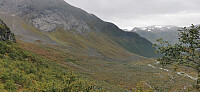 Dette er ein tur som eg kan like som aller best! Naturen er rå og mektig! Middagsnibba 1443 ligg lite inne med info om rute opp! Sett vekk ifrå at ein kan nå den fint på ski via Hanekammen 1651 moh. Ekstra kjekt då å finure terrenget som tilsynelatande ser knotete ut til fots ifrå nye kanter. Skodda låg trolsk idag med yr på toppane! Det la likevel ingen hindring på utforskningstrangen og ein eventuell retur. Nydelige haustfargar og fantastisk å studere breane & brefalla som Melkevollbreen & Briksdalsbreen/Jostedalsbreen. Ingen ting anna å seie enn stor fascinasjon for naturen i dette riket!