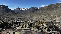 Roleg morgon inne ved Olavsbu og fint med frukost kaffien i stilla. Returen tilbake til Leirvassbu vart med ein forandring utifrå første plan. Som var tenkt over Austre Rauddalstinen og vidare via Store & Vestre Rauddalstindane. Ulike årsaker forkorta turen og dei tenkte planane! Turen vart likevel ein kjempefin dag i fjellet. Fin dag og tur i fjellet ilag med Inge