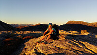 Møttast på Moskog etter jobb og starta frå Haukedal skule og gjekk ca 400 m på vegen innover dalen, kunne ha parkert på grusplassen ved skilting og stistart. Fin sti å følge opp til Kabusen, og utruleg flott eit skue å sjå utover frodige Haukedalen. Ellers fint å følge vidare delvis sti og sauetrakk over ryggane mot Høgefjellet, som ligg så utruleg vilt og flott til med syn rett inn til Grovabreen. Hadde vi hatt betre tid kunne eg tenkt meg å gå vidare til Høgefjellet 1438 moh Det får bli i eit seinare høve og ifrå Jølster sida. Flott retur tilbake med hodelykt frå toppen med ein stjerneklar himmel, regnet kom på bilruta ved Moskog kl 21.30..fin timing :)