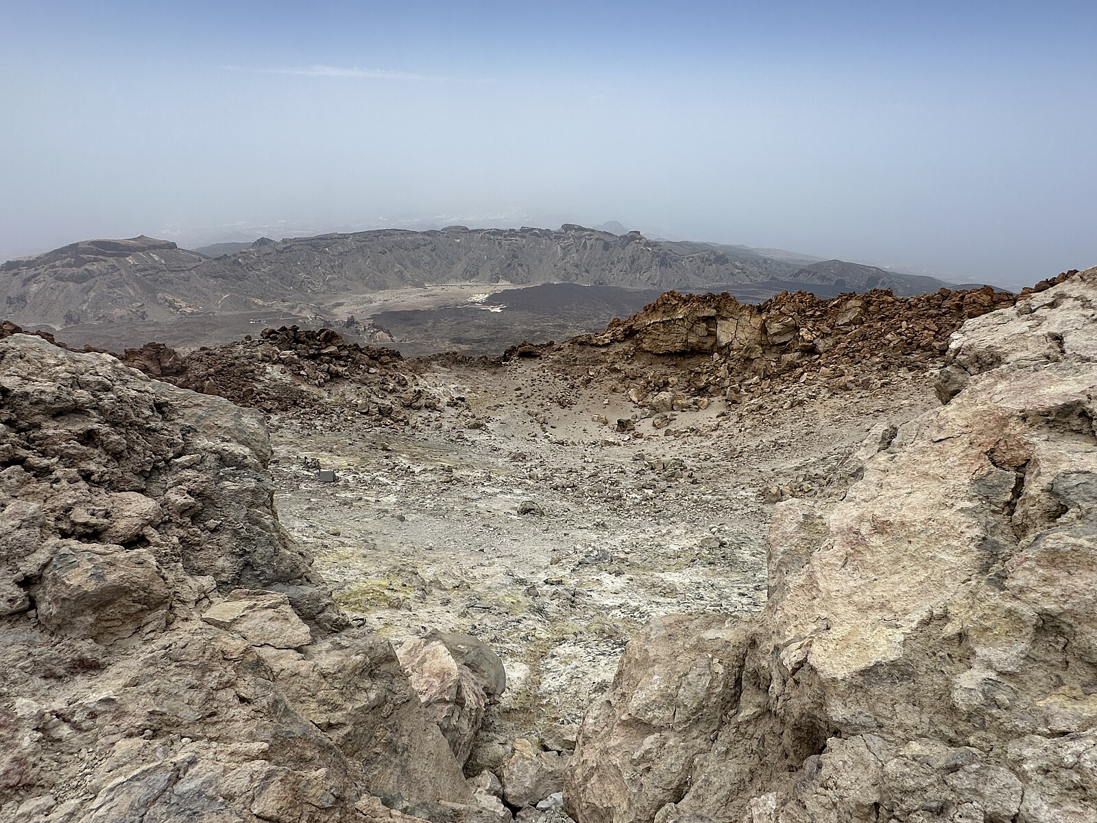 Prøvde å få tillatelse til å besøke toppen av Teide flere uker før vi dro nedover. Men helt umulig. Hadde egentlig gitt opp, men prøvde en gang til på mandagen på hotellrommet. Og under over alle under, så var det 2 billetter igjen. Spurte Øygunn, men innen hun hadde svart så var det bare 1 tillatelse igjen. Den klarte jeg å få tak på. Var dessverre ikke lur nok til å bestille billetter til gondolbanen, noe som skulle vise seg å være en smule dumt. Leide en liten bil til dagen etter. Dro på formiddagen på tirsdag opp til parkeringsplassen som ligger ved «hovedveien» >>>