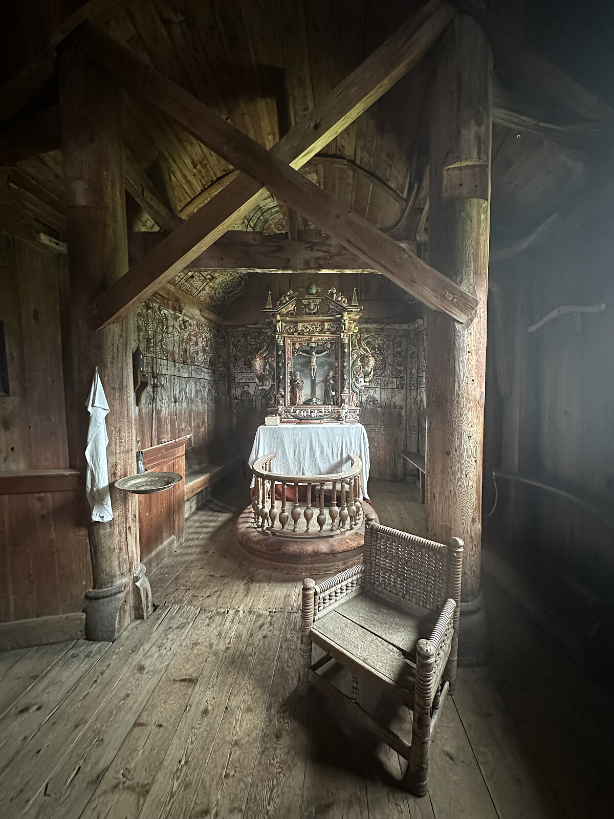 Besøkt 10.30 Besøkt bare ute Undredal stavkirke er en enskipet stavkirke (langkirke) med sadeltak som ligger i den lille bygda Undredal i Aurland kommune i Sogn og Fjordane. Den har kun 40 sitteplasser og er den minste stavkirken i Skandinavia som fortsatt er i bruk. Kirken ble først identifisert som stavkirke tidlig på 1900-tallet. Datering Kirken er omtalt første gang i et dokument fra 1321. Dendrokronologiske årringstester har ikke gitt en klar alder, men kan tyde på at kirken ble reist mellom midten og slutten av 1100-tallet.En antakelse om at kirken var bygd i 1147, er basert på at tegn risset på en takstol inne i kirken tolkes som dette tallet. Tallet er skrevet med arabiske tall, som ikke kom i særlig bruk i Norge før på 1300-tallet. Jens Zetlitz Monrad Kielland mente i 1902 at >>>
