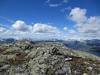 Parkerte på en avkjørsel til en sidevei i SØ enden av Hallandsvannet. Litt usikker på om det var her stien gikk fra, men vi fant den ganske fort etter å ha parkert. Så bar det bratt opp gjennom granskog og en gresskledd åsside på en grei, men noe utydelig sti. Jentene fòr opp bakkene og vi nådde toppen etter 35 minutter. Flott utsikt og en fin rasteplass. Retur samme veien.