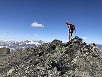 På sykkel fra Leirvassbu, langs anleggsvegen i Gravdalen. Noe før Gravdalsdammen parkerer jeg doningen. Herfra må jeg vade over Storutla. Det går helt fint. Sørvestover opp lia, mot nordsiden av Vest for Vestre Rauddalstind (1931 moh.), og etterhvert vest for liten bre. Nokså bratt men greit nok. En del sva. Siste stykket dreier jeg ut på vestryggen, før 1931 er besteget. Så bærer det ned og opp før første 2k-topp er nådd. Vestre Rauddalstinden.