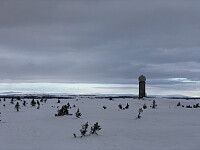 Jeg langet ut i skisporet. Så fikk jeg lyst til å prøve skaresnøen, og sannelig bar det ganske godt. Dermed siktet jeg meg inn på nærmeste fjelltopp, og med mye god, og iskald, medvind, klatret jeg oppover. Skaren bar bare bedre og bedre, og til slutt var jeg oppe på Geiteknappen, en av flere topper oppe på dette platået.