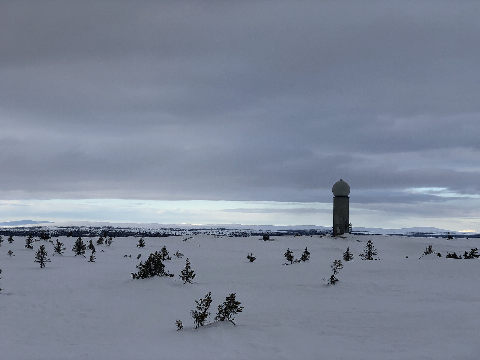 I le for det ventede uværet tenkte jeg ikke så mye på ekstrautstyr og varme klær. Jeg tok med en banan, 1/2-liter drikke og en ekstra genser rundt livet, foruten vanlig langrennsbekledning og skøyteski. Det er beskrevet skispor helt til topps.