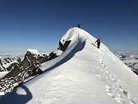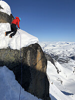 Koselig ettermiddagstur med Kristinee, Rusla og Garm. Været stod oss ikke bi og vi gikk regn på toppen. Gliforholdene ned ble spolert men en fin tur var det likevel. Flott randotopp så absolutt.