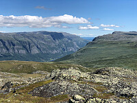 Ned prøvde jeg en "snarvei", rundt Ramntind, i lia ovenfor Pettvika, men det anbefales ikke. Det er vel bratt, mye skrågange og ujevnt underlag.