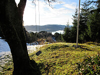 We had time for a relatively short walk but still were interested in exploring opportunities to do something new. Expecting chances for some low-standing November sun from the southwest, we thought that hiking up to Kubrekka from Sandven right next to Kalandsvatnet could be a reasonable option (yes, when "digging deeper", we read in Harald's trip report that the top had no views and is of no interest to normal hikers; but then: are we normal hikers? :-)). The main idea was to go up via Stemmedalen, then cross over Kubrekka from the northwest to the southeast, before then walking down Høgerinden in parallel to Tjørnadalen to get back to Sandven. When aiming for Stemmedalen from Osvegen, however, we faced a sign informing us that someone would not like us to proceed further towards Stemmedalen along >>>