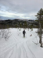 Sofie og Anders Bolme ble med på tur i dag. Fin tur oppover, og flott føre når man kom ned igjen til skogen. Føret lenger opp var mye forskjellig. Krydret turen med litt trappe kjøring ved nabohuset til Solli Kaasens.