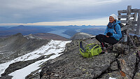 Litt nysnø på veien videre til Åbittinden og også på vei ned mot Vardfjellet. Ellers gode forhold med tildels frosne myrer nå i midten av oktober.