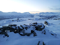 Jobbavtale første del av dagen og følgelig sen start: Litt før 12.00 fra Gjevilvassosen... 20 kuldegrader ved startpunktet.