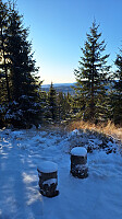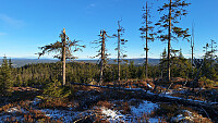 Nydelig dag med såvidt over 0 grader i høyden og minusgrader lavere ned, men vinden var så bitende kald at jeg somlet ikke over tregrensa. Fint å gå i terrenget på steinhard tele. Bommen var nede da jeg kjørte forbi tidligere i høst, så selv om den var oppe nå, valgte jeg å parkere på utsiden.